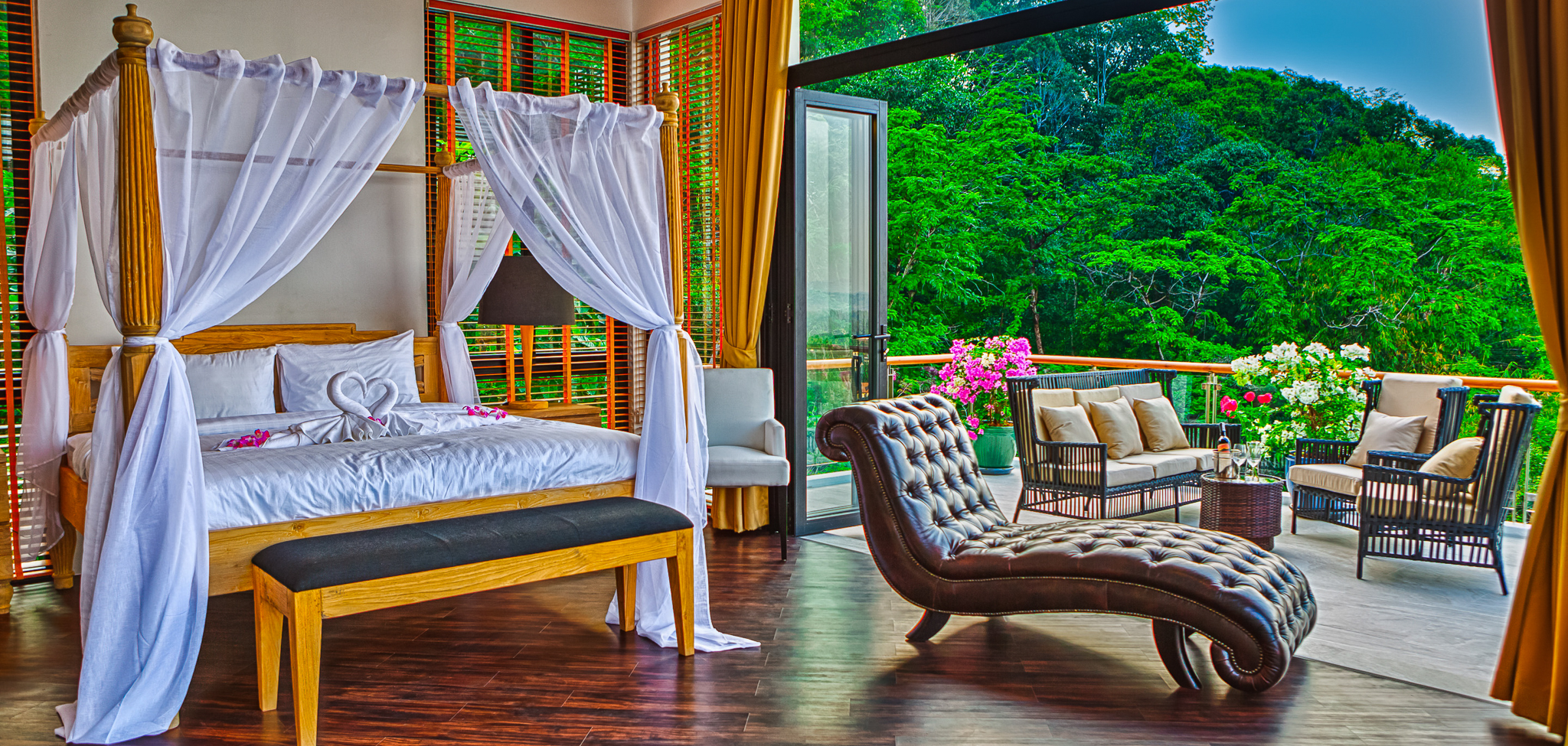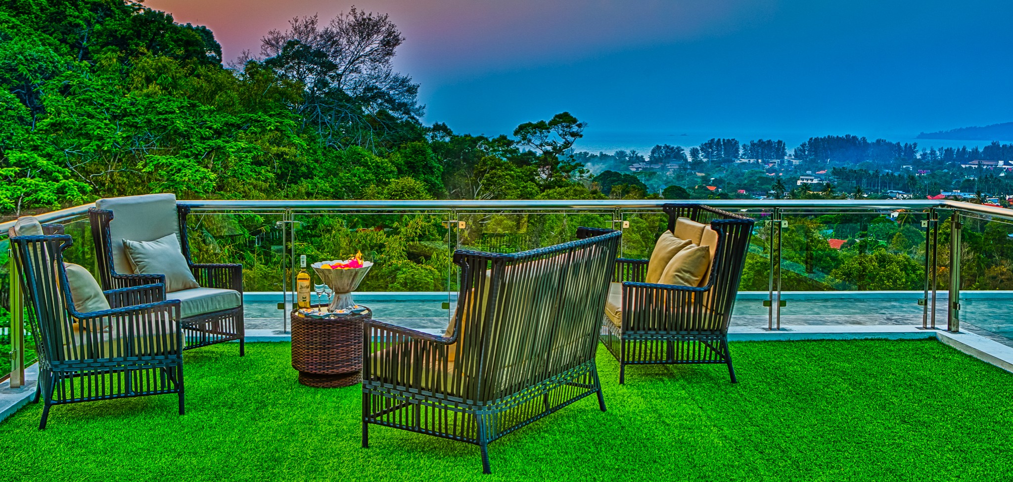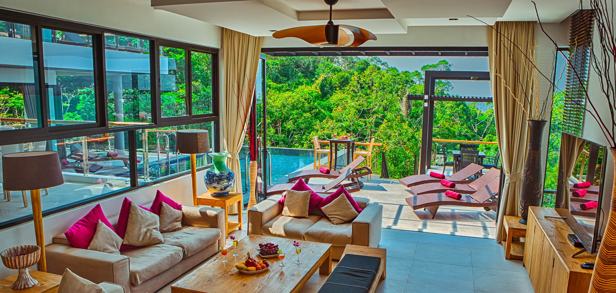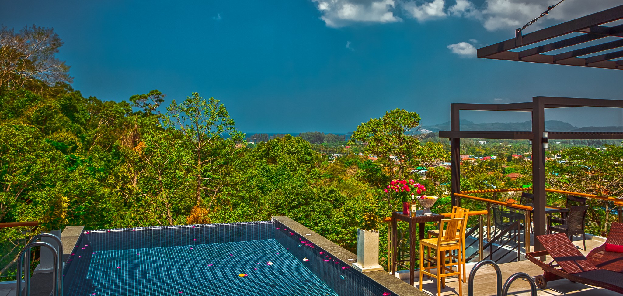Located 70 meter high on the hillside surrounded by lush tropical forest and natural waterfall, Grand Villa Luxury time provides breathtaking views over beautiful valley of Phuket’s Bangtao area and Andaman sea.